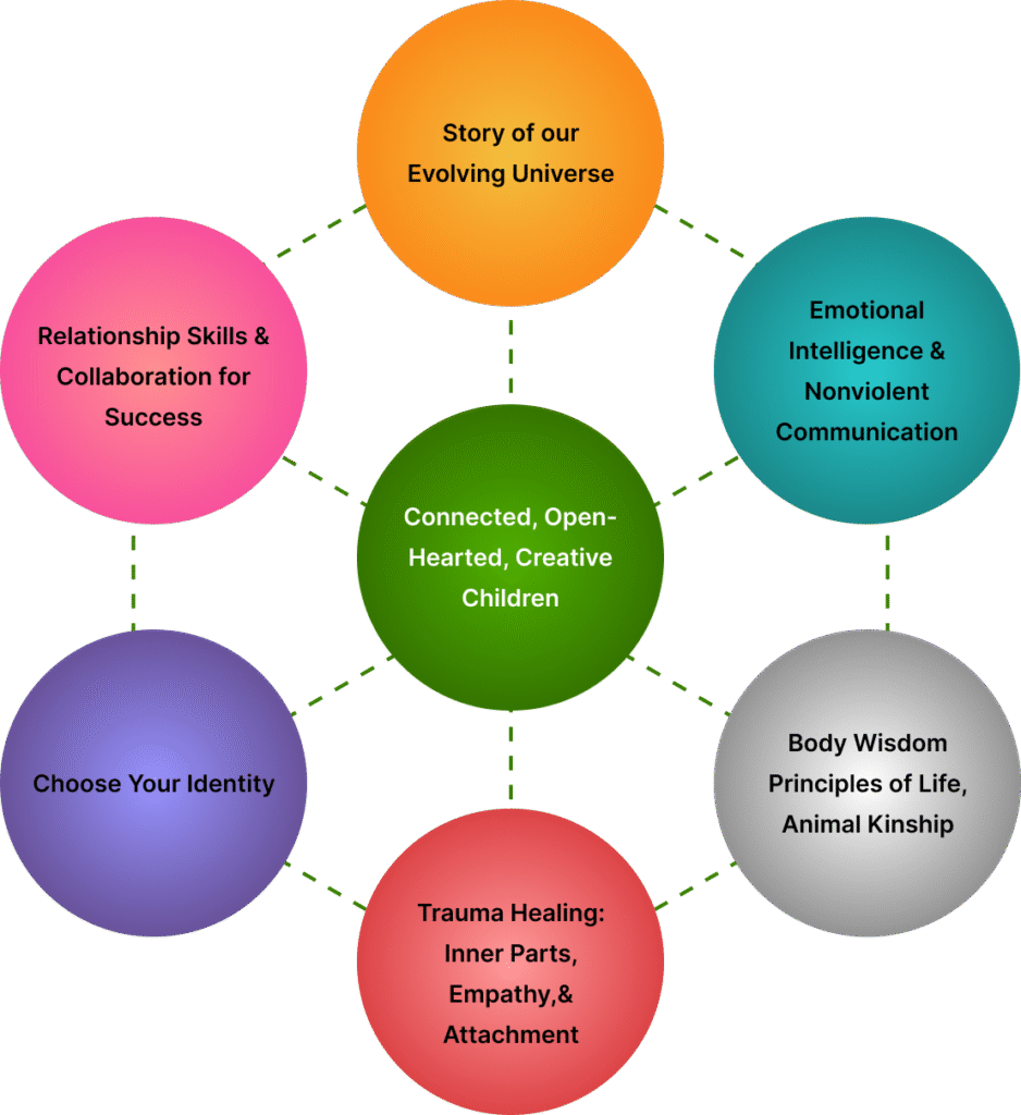 We design, deliver, and share experiential, interactive education that reorients children—and the adults around them—toward what truly matters: Care for life, Truth and empathy in relationships, and Joyful service to the whole.